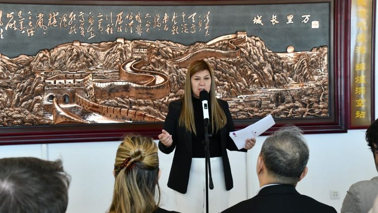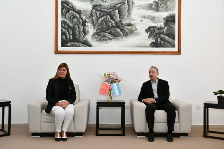 La presidenta de la Legislatura fue recibida por el Embajador de la República Popular China en Argentina, Wang Wei y estuvo acompañada por autoridades provinciales como la secretaria de Emergencia y Gestión del Riesgo, Luciana Ortiz Luna y el coordinador de Casa de las Leyes, Pablo Ruiz.