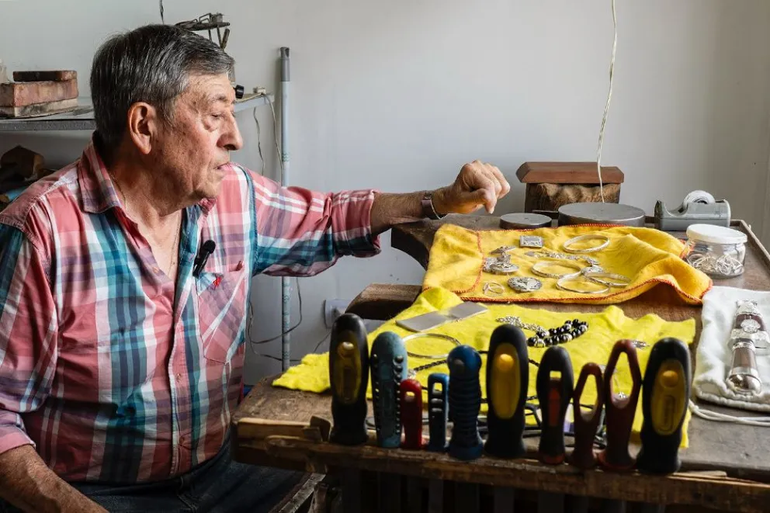 "Lo mío es orfebrería y hace varios años que trabajo en esto", señaló y destacó que con la plata se pueden realizar una variedad de cosas como cadenas y anillos, entre otros.