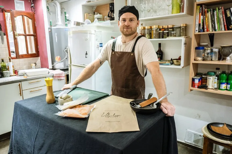Otro de los emprendedores destacados es el dueño de Ulular Bistró, Demian Blocki. El emprendedor realiza una novedosa propuesta gastronómica gourmet con comida envasada al vacío, destacándose algunos 'platos' como carne desmechada, salsas, merluza y más.
