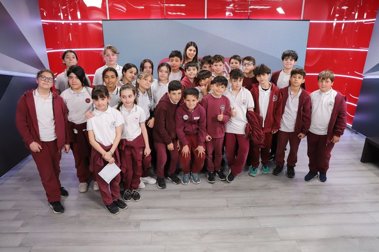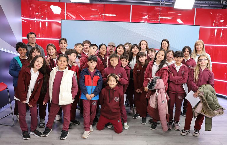 Los peques (y los docentes también) le pusieron onda y posaron para las fotos que le sacó el reportero gráfico en los estudios de LMPlay, donde les impactó verse en cámara. Fue una verdadera invasión de sonrisas.