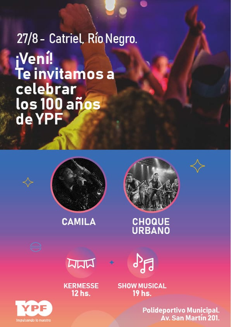 Catriel se suma así a los distintos festejos que realizó YPF en la región, con escalas en Cutral Co y Plaza Huincul, Rincón de los Sauces, Neuquén y Añelo.