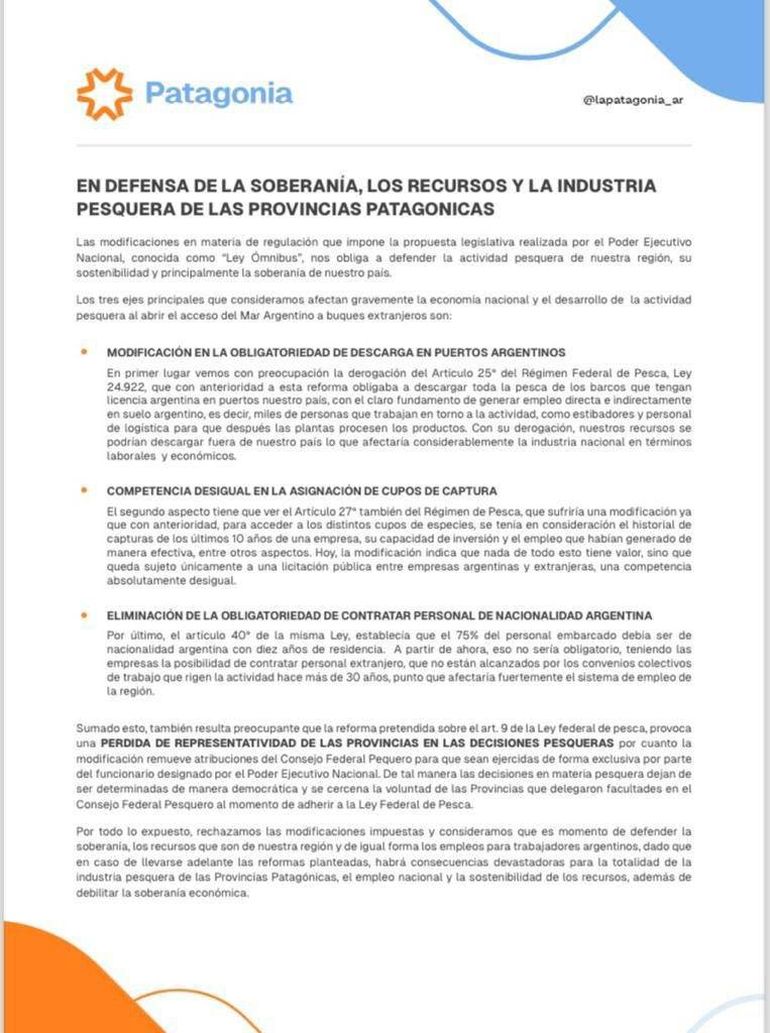 Para los mandatarios, de llevarse a cabo las modificaciones contempladas en la iniciativa, "afectarían gravemente la economía nacional y el desarrollo de la actividad pesquera, abriendo el acceso del Mar Argentino a buques extranjeros".
