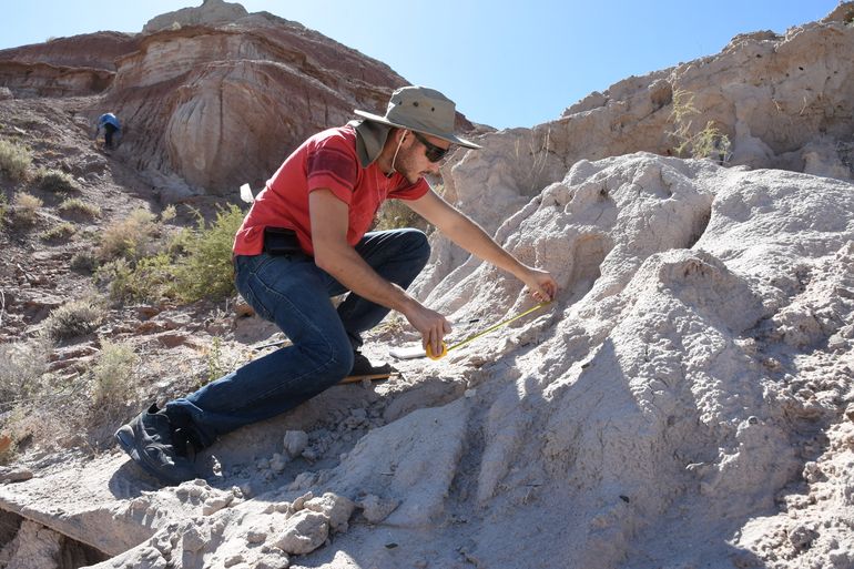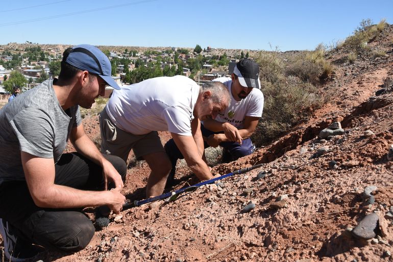 En 1994, el comisario Roberto Neira encontró los primeros restos y fue el paleontólogo Jorge Calvo, quien estuvo al frente de los trabajos, del estudio de los huevos de titanosaurios en tres niveles. “En ese entonces, los restos se encontraron en tres niveles continuos de nidificación, los cuales pueden ser seguidos lateralmente por cientos de metros”, explicó Calvo a LMNeuquén en una de las pausas realizadas durante el intenso trabajo junto al técnico paleontólogo Juan Mansilla, y estudiantes avanzados de la carrera de Geología de la Facultad de Ingeniería de la UNCo.