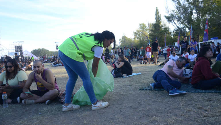 "Nos vamos juntando por equipos y avanzamos por todo el predio, a la mañana sacamos todo lo que quedó del día anterior y a la tarde vamos consultando a la gente si tiene algo para tirar", contó la trabajadora que pasa hasta dos o tres veces al día por el mismo lugar para mantener la limpieza.