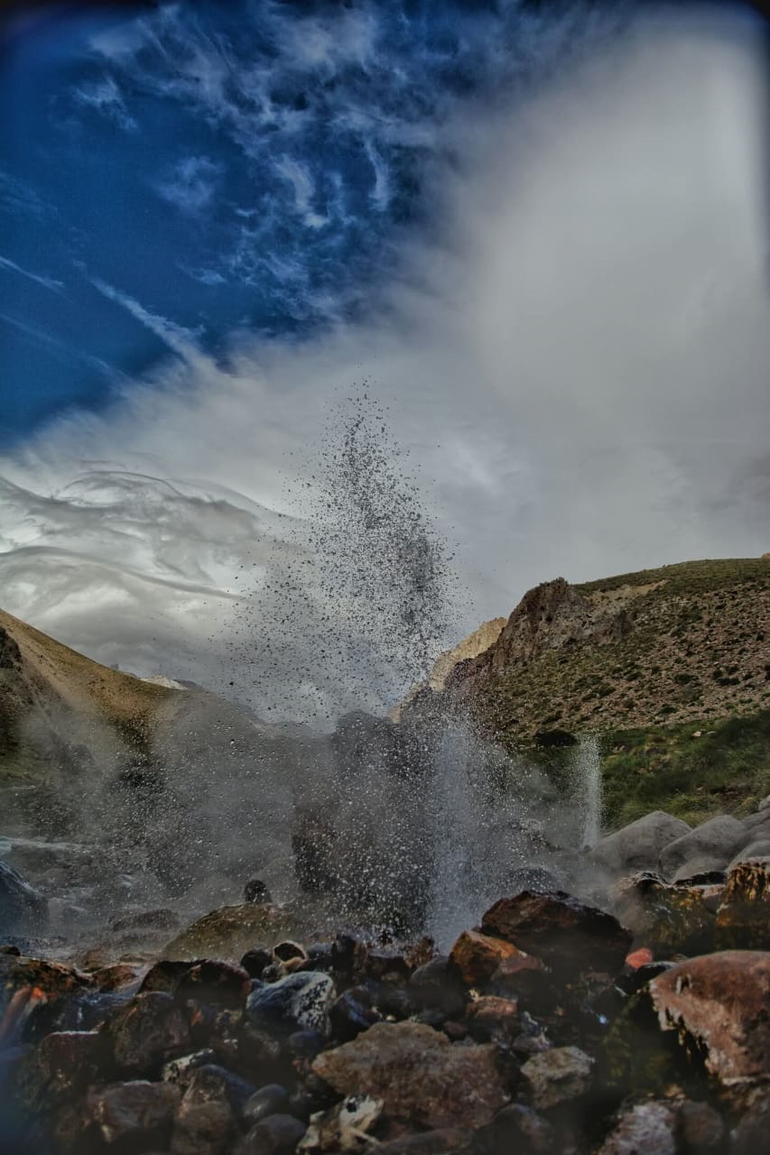 Ubicado en el corazón del Área Natural Protegida del Sistema Domuyo, en el norte neuquino, se encuentran "Los Tachos", un impresionante conjunto de géiseres y fumarolas que expulsan agua hirviendo y vapor desde el subsuelo, creando un espectáculo geotérmico único en la región. Para tener en cuenta: no es solo un fenómeno natural, es como un tren de vapor que emerge de lo más profundo del emblemático volcán, llevando consigo el calor y la energía de la tierra, mientras recorre los rieles de agua que fluyen desde las profundidades del macizo.