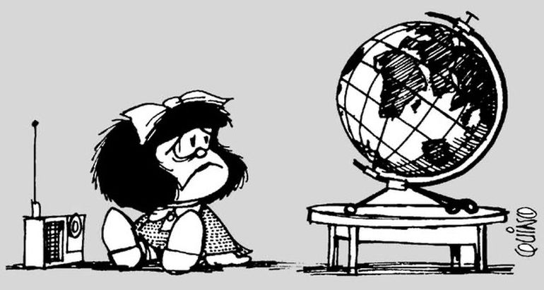 Si Mafalda pudiera mirar y escuchar hoy las noticias, seguramente mantendría su ceño fruncido. La guerra sigue siendo protagonista en distintas partes del mundo, aunque ahora se libra también en los terrenos digitales y económicos. Quizás ironizaría sobre la capacidad humana para inventar tecnologías extraordinarias y, al mismo tiempo, ser incapaz de resolver lo básico: que nadie pase hambre, que los chicos puedan crecer en paz, que el planeta deje de ser tratado como un basural.