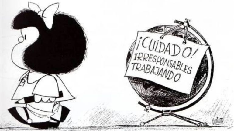 El cambio climático, por ejemplo, seguramente sería uno de sus temas predilectos. Mafalda siempre tuvo una relación especial con el globo terráqueo, ese que cuidaba, retaba y acariciaba según la ocasión. Hoy, ante incendios, sequías extremas y deshielos que amenazan al mundo, probablemente lanzaría una de esas preguntas ácidas que tanto la caracterizaban: “¿Qué parte de cuidar la casa no entendieron los adultos?”.
