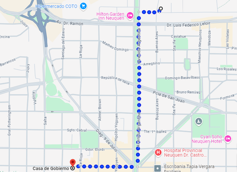 Según información proporcionada por la Asociación Docentes de la Universidad Nacional del Comahue (ADUNC), la marcha partirá del playón central y se dirigirá hacia la Avenida Argentina por la calle Leloir. Desde ahí, está estipulado que la manifestación baje por la avenida hasta la calle Roca.