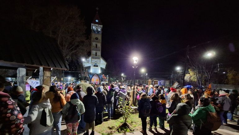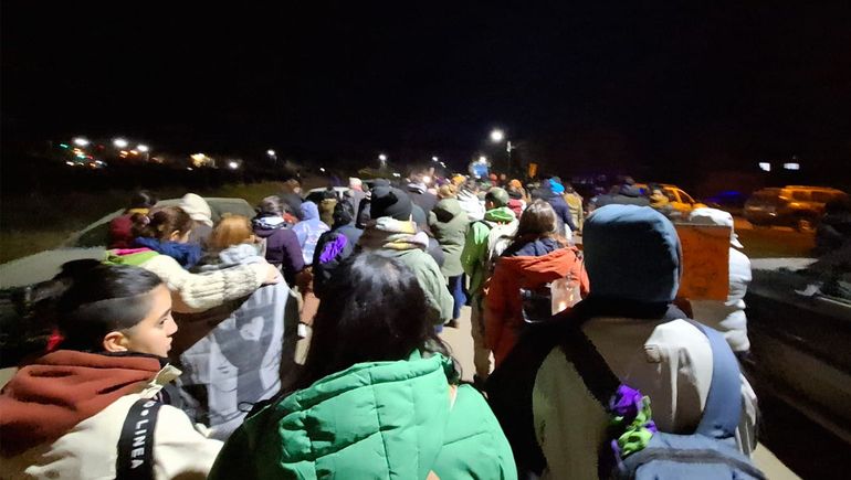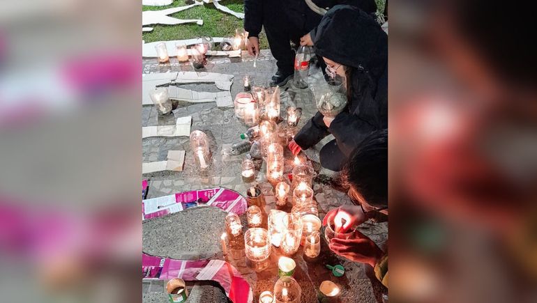 La marcha comenzó en un lugar simbólico para la localidad, como es el predio ubicado en Félix San Martín y Los Álamos, del Barrio Lonquimay, porque ahí debería estar construida la Casa Integral de las Mujeres y Disidencias. Los manifestantes en silencio y a la luz de las antorchas concluyeron la marcha frente al municipio.