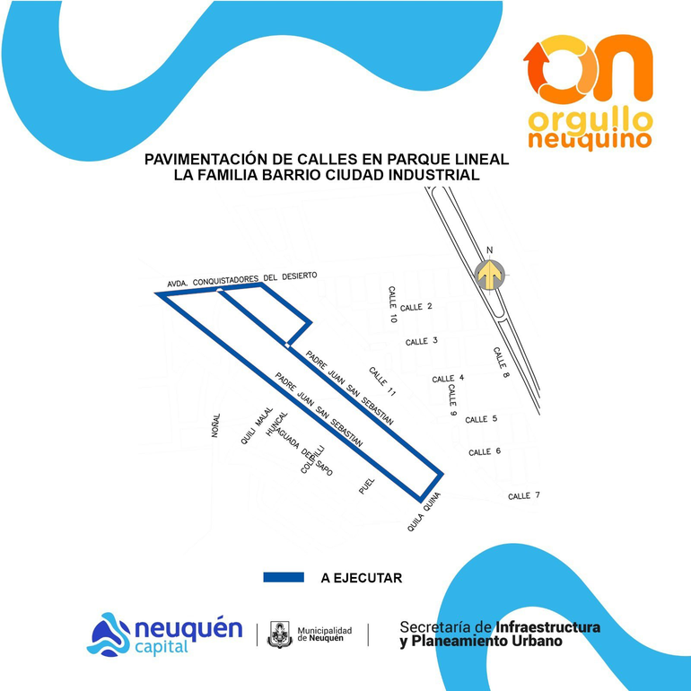 Esta obra tiene un plazo de seis meses de ejecución, y abarca todas las calles aledañas al parque La Familia, más toda la zona del SAF que está en esta cabecera contra la Conquistadora del Desierto. La inversión total de esta obra es de 1.470 millones de pesos, financiada al 100 % con fondos municipales.