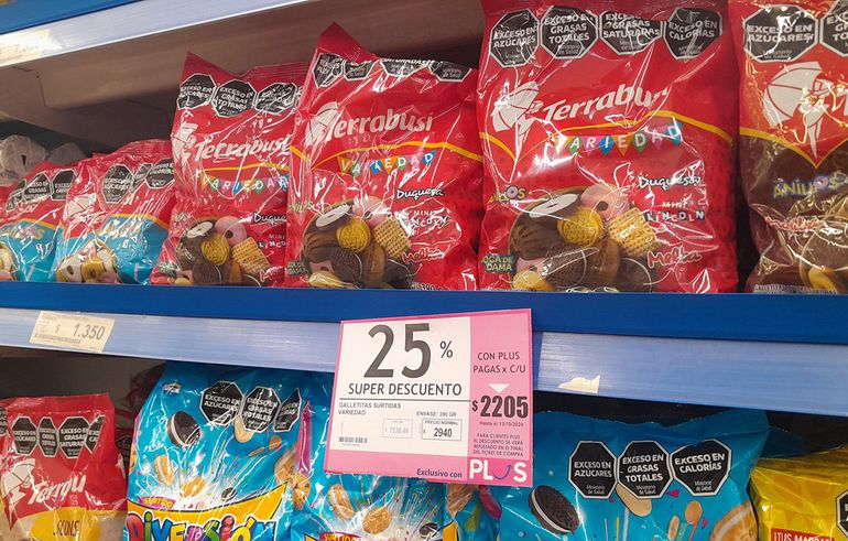 Para la merienda de los chicos, las galletitas dulces Variedad de Terrabusi, el paquete de 390 gramos sale 2.205 pesos en el supermercado y 1.844 pesos en el mayorista, y si se llevan tres paquetes quedan en 1.696 pesos.