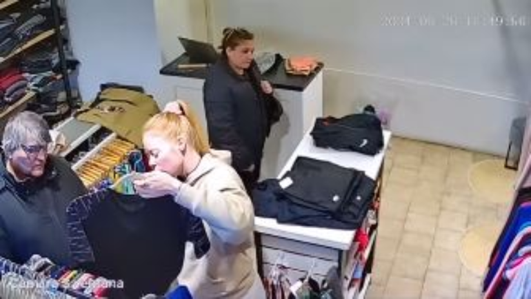 En el video que difundió la vendedora de Fashion Lover se ve claramente cómo actúa la pareja. Cada vez que el hombre le da la espalda, ella aprovecha a agarrar prendas de vestir y meterlas en su cartera. Incluso también debajo de una calza que lleva puesta.