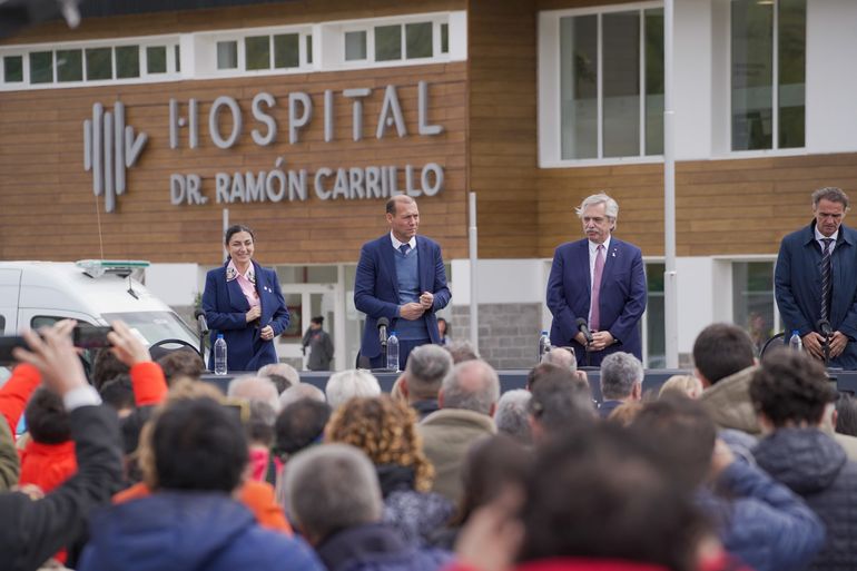 El presidente Alberto Fernández encabezó en San Martín de los Andes el acto de inauguración del nuevo edificio del hospital Ramón Carrillo. Además participan el gobernador Omar Gutiérrez y el intendente local, Carlos Saloniti, entre otras autoridades.