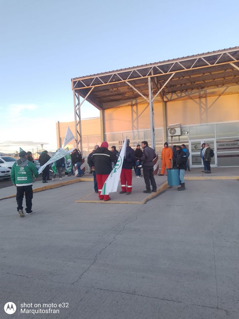 En la mañana de este miércoles los trabajadores decidieron tomar el corralón municipal y prendieron neumáticos en el playón. También se manifestaron en la puerta del palacio municipal.