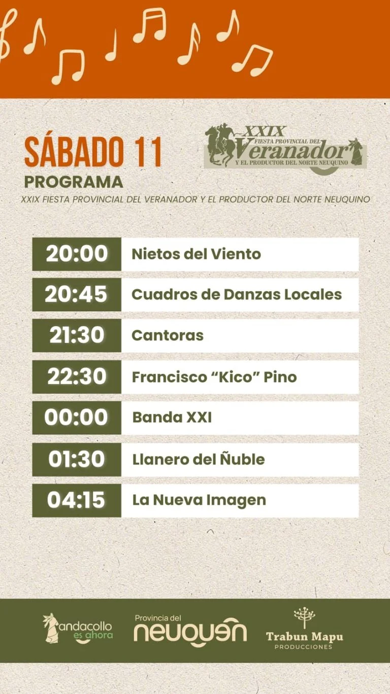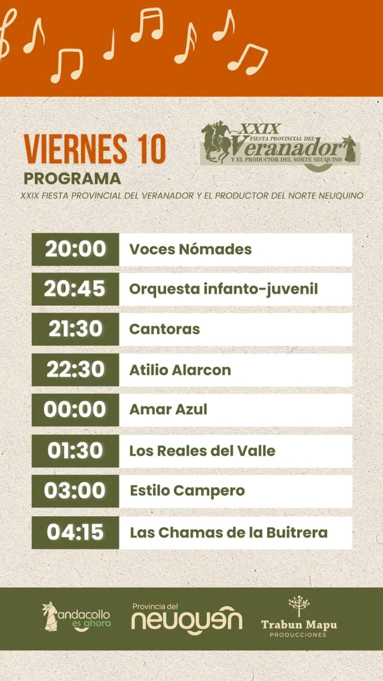 Durante los días 10, 11 y 12 de enero se llevará a cabo la XXIX Fiesta Provincial del Veranador y el Productor del norte neuquino. Se trata de un evento que celebra la tradición, la cultura y la identidad del norte neuquino.