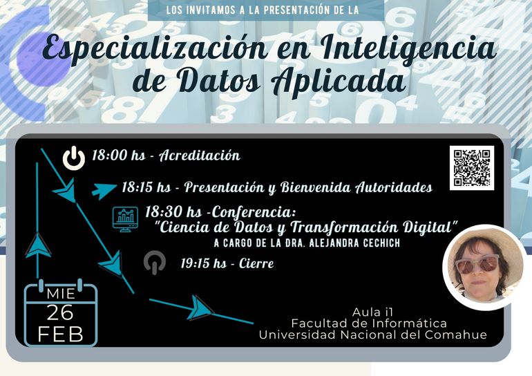 "La especialización surge en respuesta a una demanda en el mercado educativo con respecto a temas vinculados a la IA, al aprendizaje automatizado, al manejo de datos masivos, lo que se denomina big data. De esta demanda de la sociedad surge la idea de armar una especialización que no es solo para egresados de Informática, sino también para egresados de carreras de grado que requieran transformar datos en información o conocimiento, que le sea útil para la organización donde trabaja", explicó la doctora.