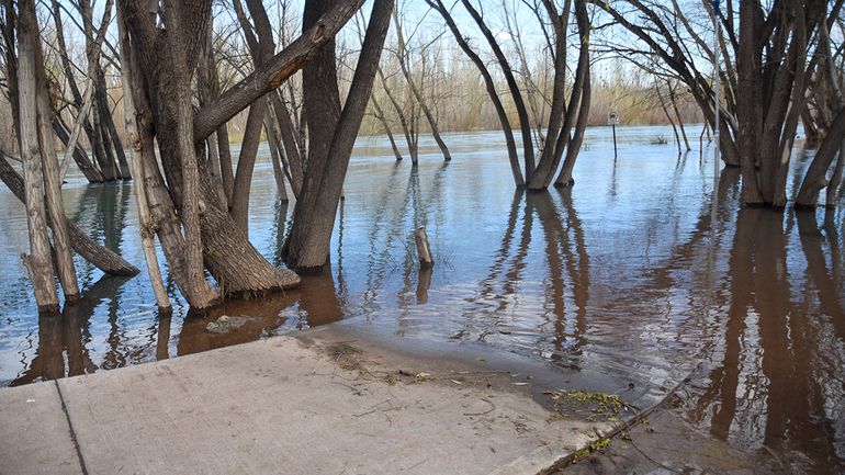 Tras las intensas precipitaciones que se registraron durante varios días en la ciudad de Neuquén, los caudales de los ríos Limay y Neuquén aumentaron considerablemente. Por eso, una de las postales de los últimos dos meses que más sorprende es el Paseo de la Costa y su bicisenda bajo el agua, en varios tramos.