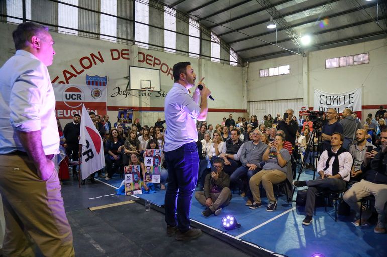 El Club Social y Deportivo Villa María, en Avenida Olascoaga al 1400, fue el escenario del acto de cierre de campaña de Juntos por el Cambio en Neuquén. Según adelantó más temprano a LMN el diputado nacional Pablo Cervi fue "un cierre de trabajo, con los que estamos trabajando y acompañando. No somos de actos numerosos, de llevar la gente en colectivo, pero sí con una buena convocatoria".