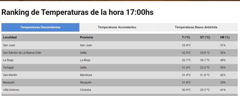 La primavera trae consigo máximas que superan los 30°, es que de acuerdo al ranking realizado por el SMN, Neuquén quedó en el sexto puesto, con 31,4°C, mientras que en el podio se encuentra San Juan con 34°C.