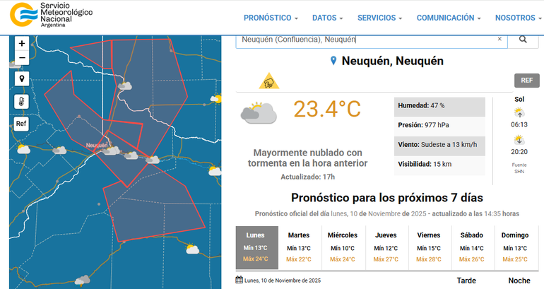 Según el Servicio Meteorológico Nacional (SMN), de las tormentas fuertes de la tarde, seguirán algunas tormentas aisladas por la noche en la ciudad de Neuquén y su zona de influencia.