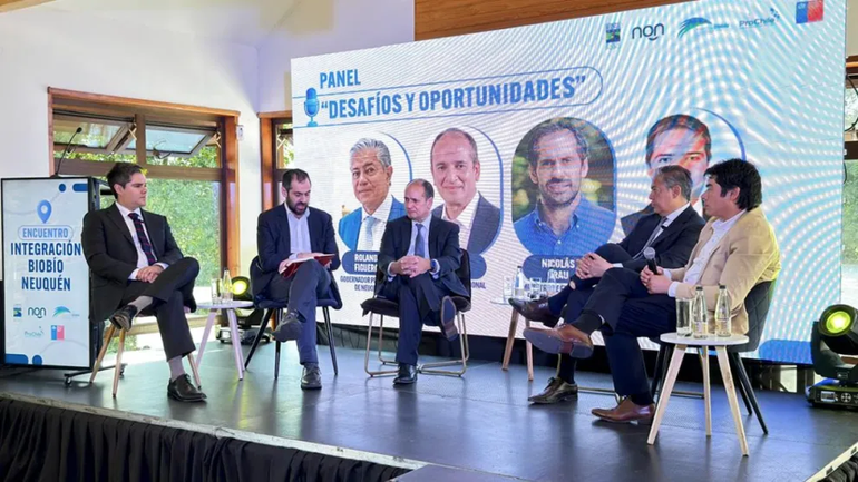 Durante el Encuentro de Integración Biobío-Neuquén, donde participaron autoridades de Neuquén y Chile, Figueroa inició su alocución junto a su par de esa región trasandina, Rodrigo Díaz Worner; y el ministro de Economía, Fomento y Turismo de Chile, Nicolás Grau, con quienes integró el panel “Desafío y Oportunidades”.