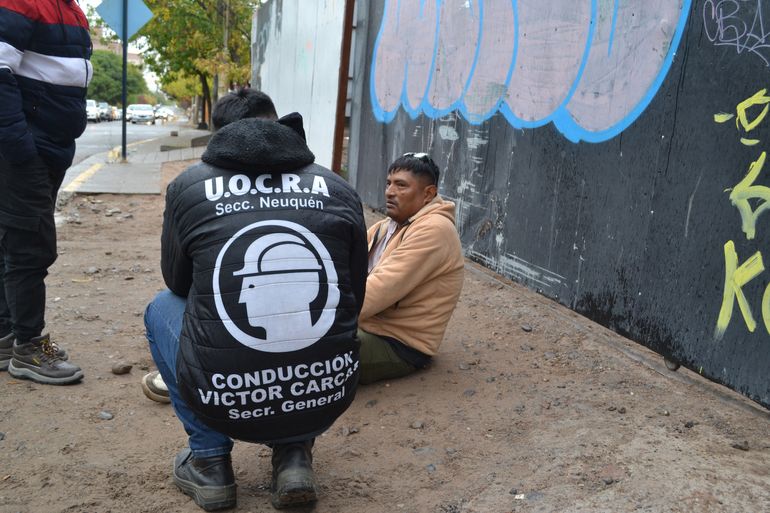 Su nombre es Juan Puca, llegó hace tres meses a trabajar a Neuquén y desde ese momento hizo changas de manera informal en el rubro de la construcción. "Hace un mes trabajo en esta obra" dijo. Y señaló: "me deben un solo jornal de 30 mil pesos, no es solo la plata es la acción, ellos me han echado porque desde el primer día pedí casco y zapatos".