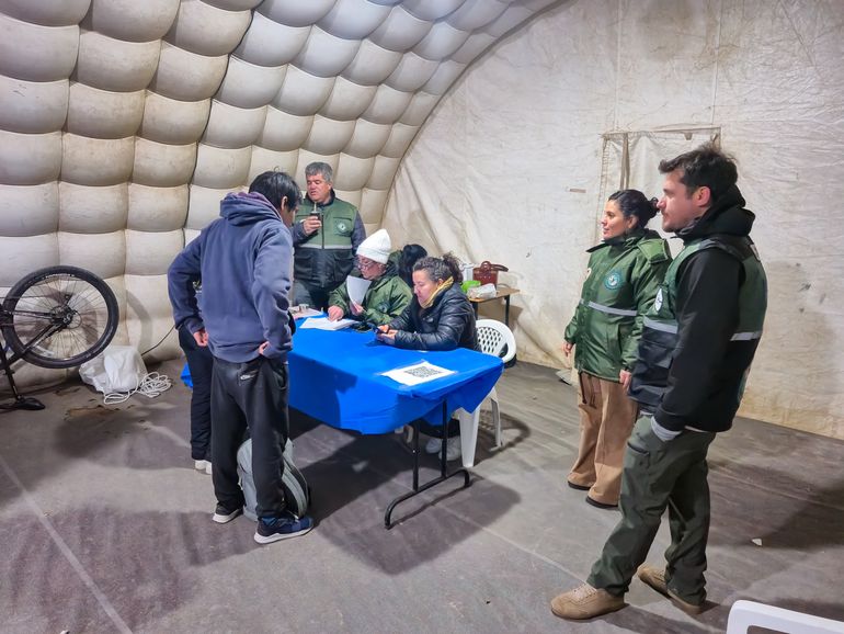 Los primeros que llegan cada día a la Ciudad Deportiva lo hacen alrededor de las 18. Como la apertura del ingreso es recién a las 20, antes son voluntarios, en su mayoría de diferentes iglesias, los que reciben a las personas para ofrecerles un mate cocido o a veces solo una palabra de apoyo.