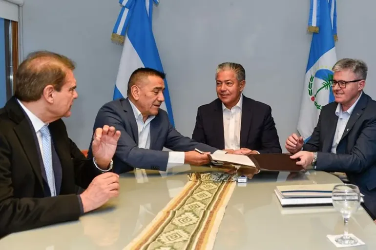 El gobernador Rolando Figueroa y los intendentes de Plaza Huincul, Claudio Larraza, y de Cutral Co, Ramón Rioseco, firmaron este viernes el contrato para construir la nueva planta de líquidos cloacales para ambas localidades. En la oportunidad, también se entregó la personaría jurídica al Club Deportivo y Cultural Municipal y Asociación Civil de Cutral Co.