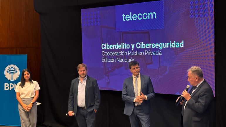 Como parte de estas iniciativas, se llevó a cabo, en el Auditorio del Banco Provincia de Neuquén, una nueva edición del ciclo Ciberdelito y Ciberseguridad de Telecom, que reunió autoridades del Tribunal Superior de Justicia y del Ministerio Público Fiscal de Neuquén, junto a especialistas de las áreas de Legales y de Ciberseguridad de Telecom.