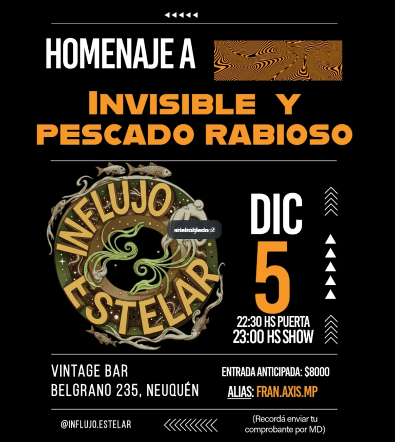 Entradas anticipadas $8000 al alias: FRAN.AXIS.MP.