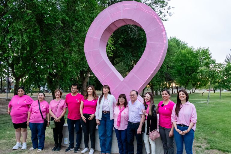 Luego se inauguró la obra de arte, concretada a través de un proyecto de ordenanza presentado por Esquivel. Se trata de un monumento del lazo rosa de más de tres metros de altura que ya quedó instalado en el Parque Central.