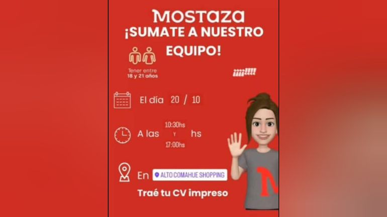 La cadena en cuestión que busca empleados en Neuquén es Mostaza, con varias sucursales en la ciudad. Sin embargo, la oferta laboral tiene un lugar y un horario determinados.