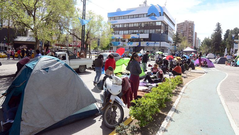 Contra el acampe en el centro neuquino, vino la orden de desalojo judicial. Pero los manifestantes dicen que resistirán. "De acá no nos vamos hasta que haya un acuerdo, hasta que nos den una respuesta", sostuvo Soledad Urrutia, dirigente de la CTEP, en diálogo con LMNeuquén.