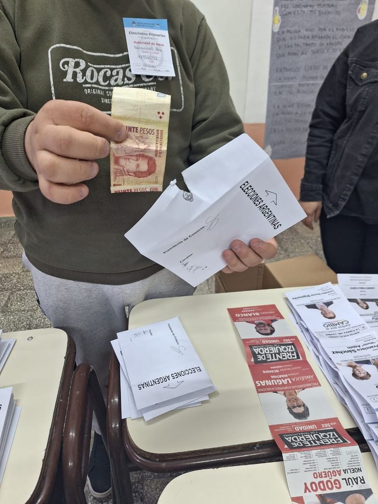 Luego, hallaron un billete de 20 pesos en vez de una boleta. Cabe recordar que a ambos casos se los considera como voto nulo.