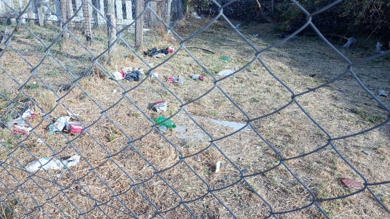 En su indignación, Rioseco describió que las personas que están habitando el predio salen "cuando se les termina el alcohol" y vuelven con más bebidas. En las fotos pueden verse botellas de plástico y cajas de vino descartadas en el predio.
