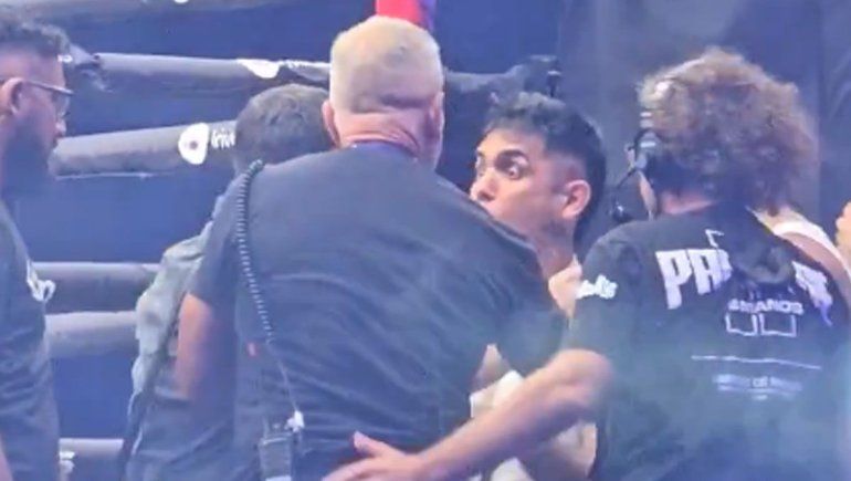 Una vez debajo del cuadrilatero, los videos grabados por el público (que se hicieron virales rápidamente en las redes sociales), muestran al joven neuquino más bien eufórico y con ánimos de seguir con su show, pero de un momento a otro se desvaneció en brazos de una de las personas que lo estaba asistiendo.