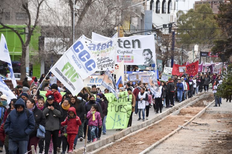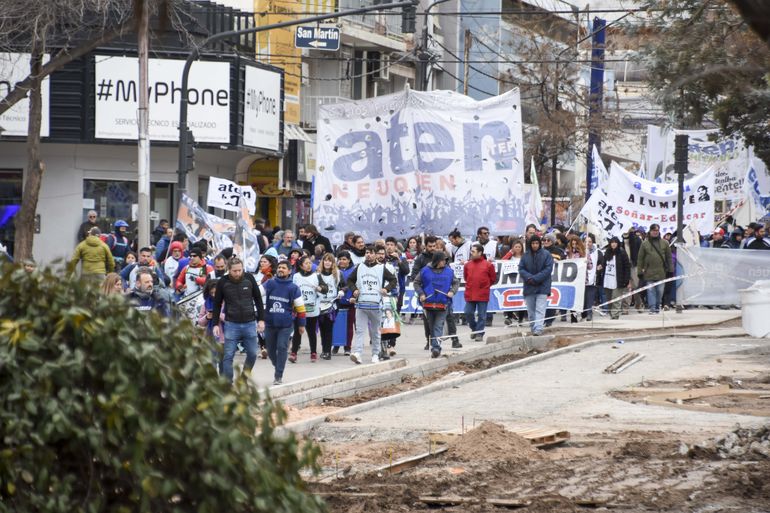 El gremio docente ATEN se movilizó este miércoles en pleno centro neuquino, en el marco del paro nacional convocado por la Confederación de Trabajadores de la Educación (Ctera) contra la criminalización de la protesta.