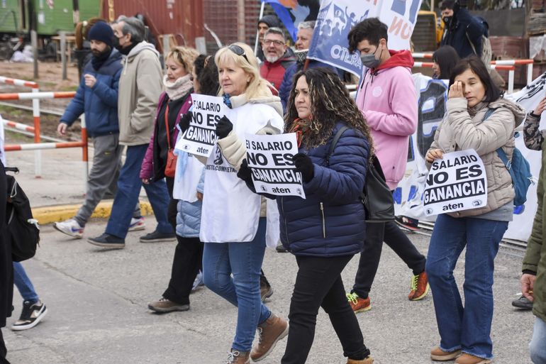 "Con la fuerza de la unidad", decía la gigante bandera que encabezaba la columna docente que partió desde el monumento a San Martín y recorrió la Avenida y las principales calles céntricas de la ciudad.