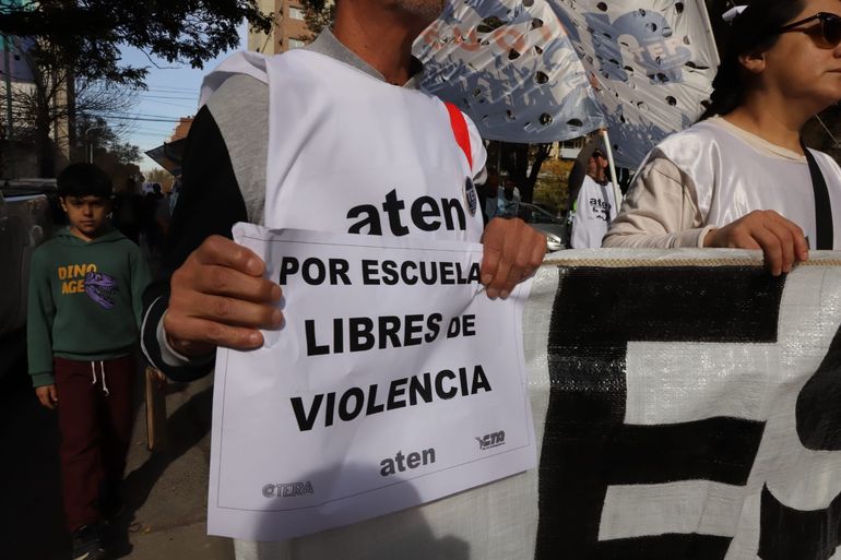 "Apelamos a que las familias siguen confiando en nosotros y nosotras y siguen comprendiendo a la escuela como un lugar seguro. Frente a los discursos que ponen en discusión el rol de los docentes nosotros seguimos construyendo una pedagogía de la empatía. Entendemos que la violencia se trabaja en la casa y en la escuela pública pero vamos a estar en la calle cada vez que nos toquen a un compañero", aseveró Cintia Galetto, secretaria general adjunta de ATEN.