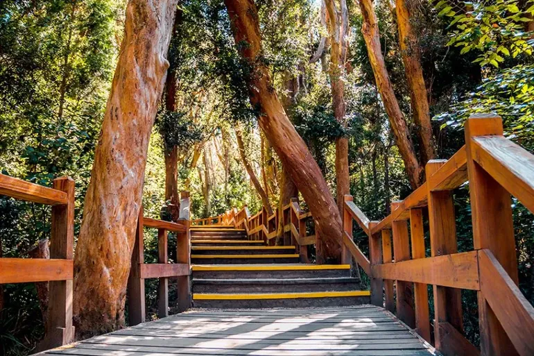 Se trata de una formación dominada por arrayanes, árboles de corteza lisa y tonalidad entre rojiza y canela, que en este sector alcanzan una densidad y desarrollo poco frecuentes.