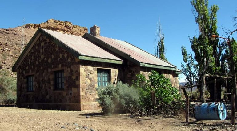 En las aristas de un circuito que alterna sólidas viviendas construidas por Vialidad y Agua y Energía, ruinas y ranchos de adobe, dos edificaciones - intactas - juegan a detener el tiempo: la torre de medición del caudal del río Neuquén y una vieja estafeta postal que fascina con sus muros de roca, un buzón rojo de hierro y una prolija arcada con un toque ornamental de piedra bocha que exhibe con orgullo el escudo nacional.