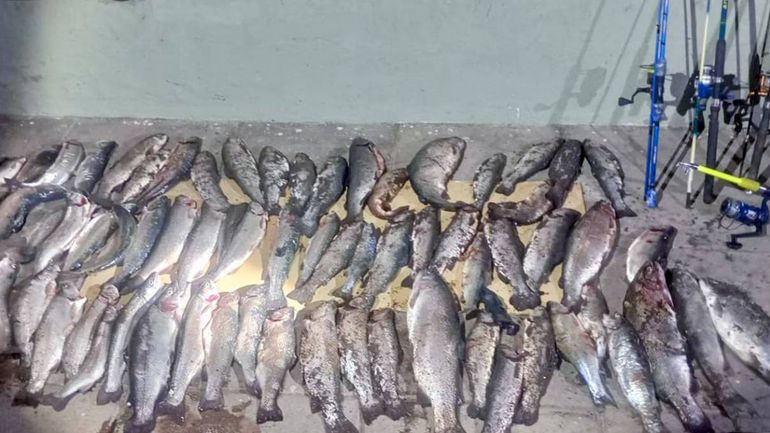 Se encontraron varios elementos vinculados a la causa, entre ellos, 159 piezas de pejerrey, listas para la venta, así como dos truchas arcoíris congeladas. Además, la policía incautó un trofeo de ciervo de ocho puntas, seis cañas de pescar y cuatro recipientes con diversos elementos de pesca.