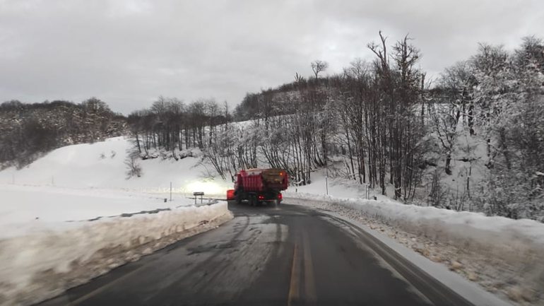 La calzada se encuentra con hielo y nieve como también el viento blanco se hace presente en la zona. Personal y equipos de Vialidad Nacional se encuentran operando en la zona.