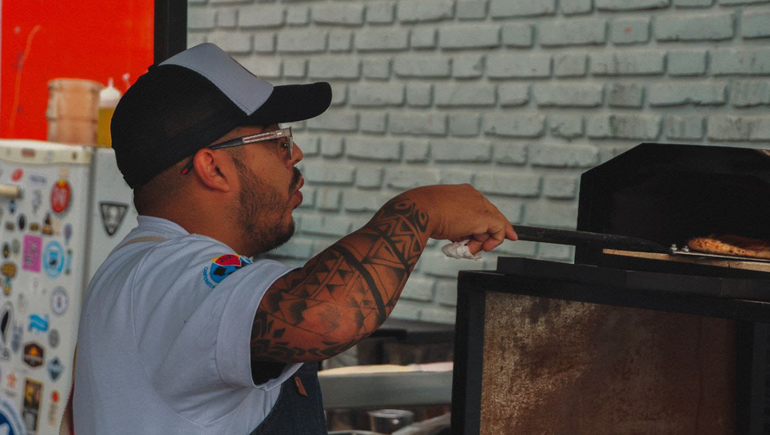 La verdadera fiesta de la pizza se traslada a la casa. No es exactamente un servicio de catering para eventos privados, pero algo tienen de parecido, y es que la pizza, en este caso, se ofrece donde estén los comensales. Incluso tiene el plus de hacerse en el momento, desde la intimidad de un departamento, una vivienda o un quincho. "Te juntás con 20 amigos y yo voy, le hago la pizza a los 20. Llevo mis hornos, a gas o a leña, la materia prima; y lo único que pone el comensal es la bebida. Lo implementé ahora", contó Cristian Abarzúa, el maestro pizzero de 31 años que se hizo conocer cuando se consagró campeón argentino, en 2022.