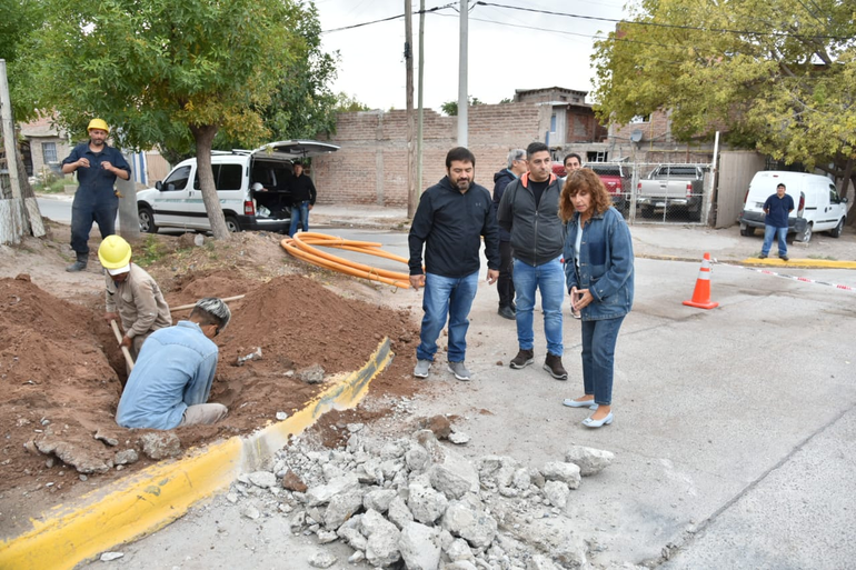 La secretaria de Jefatura de Gabinete, María Pasqualini y el presidente del Instituto Municipal de Urbanismo y Hábitat (IMUH), Marco Zapata, recorrieron junto a los vecinos esta obra llevada adelante luego de realizar el corrimiento de la traza de red que permitió instalar la cañería interna y externa, los nichos y las llaves de paso para las conexiones domiciliarias.