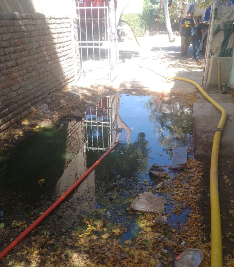 Efectivamente, al llegar pudieron detectar el olor nauseabundo y la presencia de líquidos clocales que obstruían el paso. Enseguida, se pusieron a trabajar con un camión desobstructor y uno atmosférico.