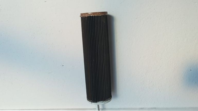En una de las fotos que recibió LU5 se puede ver uno de los filtros antes de su cambio. Según explicó Norma, cuando los ponen son blancos y cuando los cambian salen color negro.