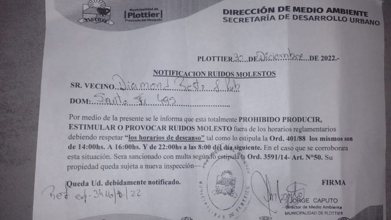 LMN pudo acceder a las habilitaciones del local en los términos de pub y salón de eventos, como así también a las mediciones de ruido solicitadas, el seguro contratado y otros requerimientos presentados. "Somos emprendedores de Neuquén que apostamos a Plottier con el único propósito de invertir. No tenemos ningún interés político con todo esto. Sólo queremos trabajar. Y nos sentimos vulnerados, porque desde que estamos acá, Comercio busca el conflicto. No apoya, directamente sale a pegarnos. Aunque hicimos todo lo que nos pidieron", expresó indignado.