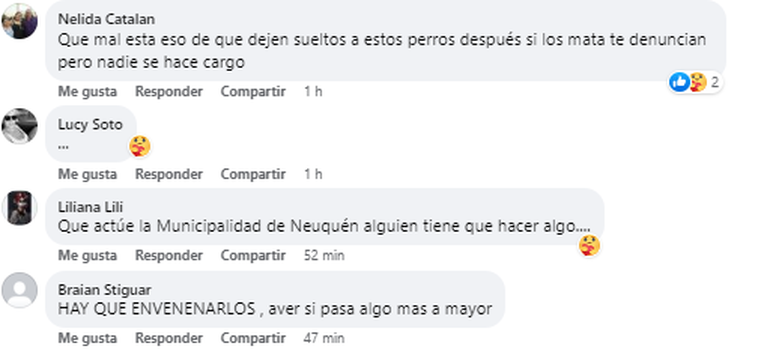También en las redes compartió lo que vivió. Varios usuarios se sumaron al reclamo, en tanto otro polemizaron y hasta promovieron la idea de envenenar a los perros que atacan como solución.