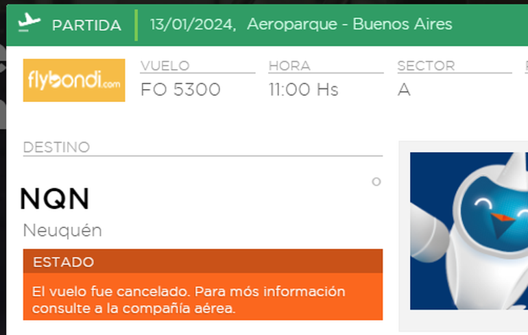 Al menos un vuelo entre Neuquén y Aeroparque fue cancelado por la empresa low cost Flybondi, en plena temporada estival, luego de que anunciara que existen demoras en la aprobación del pago de servicios al exterior.